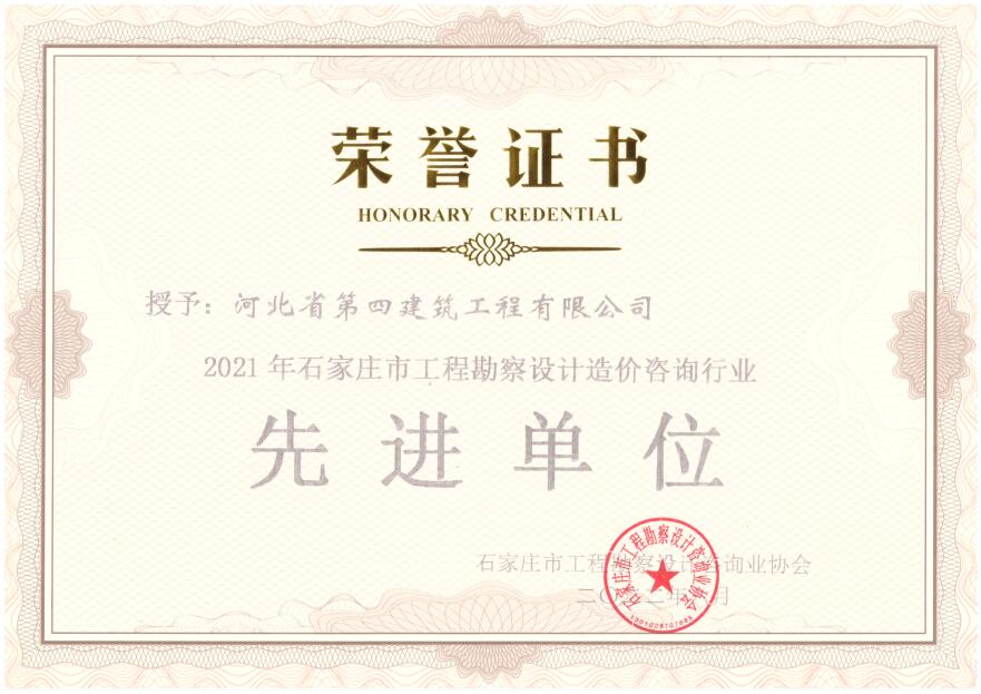 石家莊市工程勘察設計造價(jià)咨詢(xún)行業(yè)先進(jìn)單位