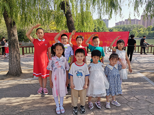 紅歌演唱活動(dòng)結束后,有的孩子劃船游園,陽(yáng)光照在波紋細碎的湖面上,像給水面鋪上了一層閃閃發(fā)光的碎銀,又像被揉皺了的綠緞。不時(shí)有小朋友從船艙里彈出腦袋,看到湖中的魚(yú)兒有的跳出了水面,有的在水里追逐、戲嬉,露出了興奮的笑容;有的孩子蹦蹦跳跳地走在綠蔭小道,涼爽的風(fēng)吹過(guò)面龐,聽(tīng)著(zhù)小鳥(niǎo)唱著(zhù)悅耳的歌聲,邊走邊欣賞公園的秀美景色,感受現在的幸福生活。