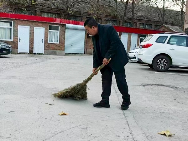 作為兼任分公司院內五家單位的警衛,王亮沒(méi)把“守大門(mén)”當成簡(jiǎn)單的值守,而是用“多走一步、多想一層”的主動(dòng),把院區安全與服務(wù)做得既扎實(shí)又貼心。夜班值守時(shí),他更把“巡查”做成了“安全隱患排查”,仔細檢查門(mén)窗、消防器材及車(chē)輛停放。有次巡查,他注意到有車(chē)輛未關(guān)車(chē)窗,當即聯(lián)系了車(chē)主,確保安全。而每天清晨的打掃,更像是他對“家”的細致守護的延伸。每天六點(diǎn)天剛亮,多數同事還沒(méi)出門(mén),他已經(jīng)扛著(zhù)掃帚、拎著(zhù)簸箕,在機關(guān)前后院忙活開(kāi)了。落葉飄在花叢里,他就蹲下來(lái)一片一片撿;紙屑卡在磚縫里,他用小夾子慢慢夾出來(lái),連墻角的雜草都要順手拔掉?!霸凼刂?zhù)這院兒,不僅要保安全,更要讓大伙兒上班看見(jiàn)清亮的環(huán)境,心里敞亮?!蓖趿恋脑?huà)語(yǔ)樸實(shí)無(wú)華。在他眼里,“警衛”不只是一份工作,更是守護分公司“家”的責任,這份盡責與主動(dòng),正是“把院區當自家”最樸素的表達。
